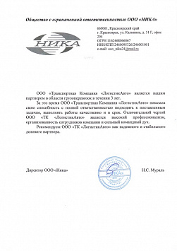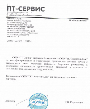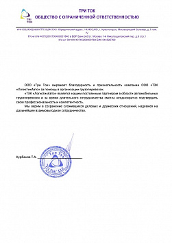 ИП Таланина выражает благодарность ооо ЛогистикАвто за оперативную и качественную работу.